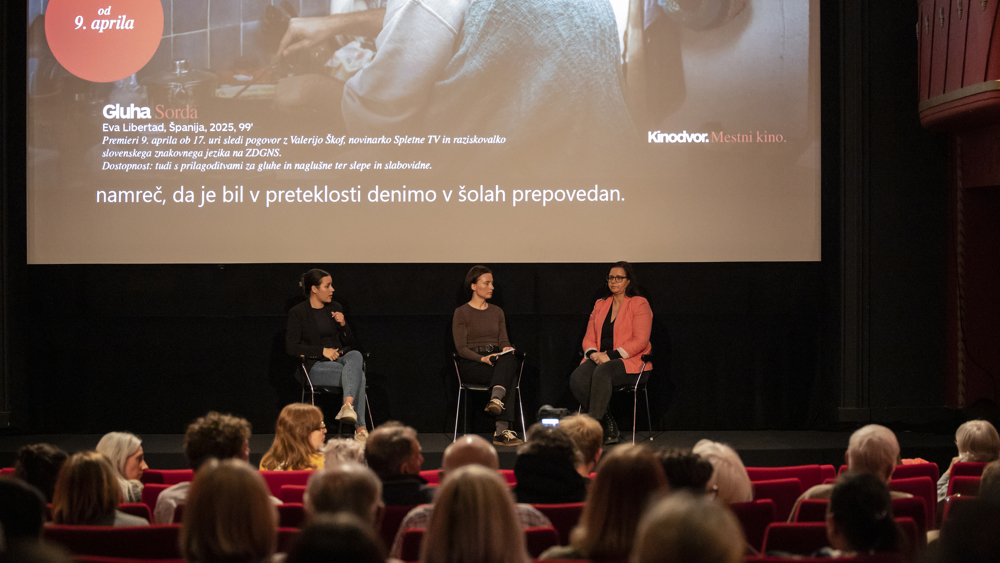 V četrtek, 9. aprila, smo se po ogledu film Gluha pogovarjali z Valerijo Škof, novinarko Spletne TV in raziskovalko slovenskega znakovnega jezika na Zvezi društev gluhih in naglušnih Slovenija. Vabljeni k ogledu posnetka in foto utrinkov.